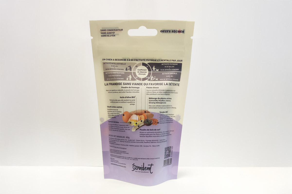 Conçue avec peu d’ingrédients, mais tous bons pour votre chien, cette friandise associe gourmandise et apaisement, pour contribuer naturellement à la relaxation et au bien-être global de votre animal, quel que soit son âge ou sa taille.