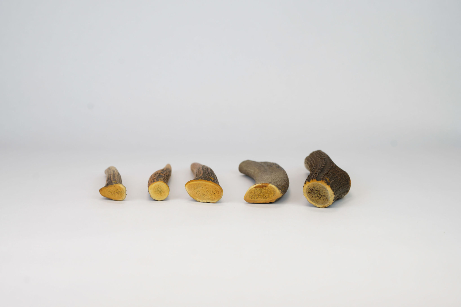 Nos bois de cerf sont divisés en 5 tailles correspondant à leur poids (et non à leur longueur). Comme ce sont des produits naturels, la forme varie d'un bois à l'autre dans une même catégorie.