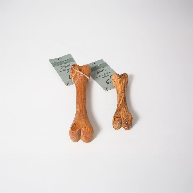 Jouet artisanal 100 % bois d'olivier naturel enrichi en huile d'olive naturelle en forme os.