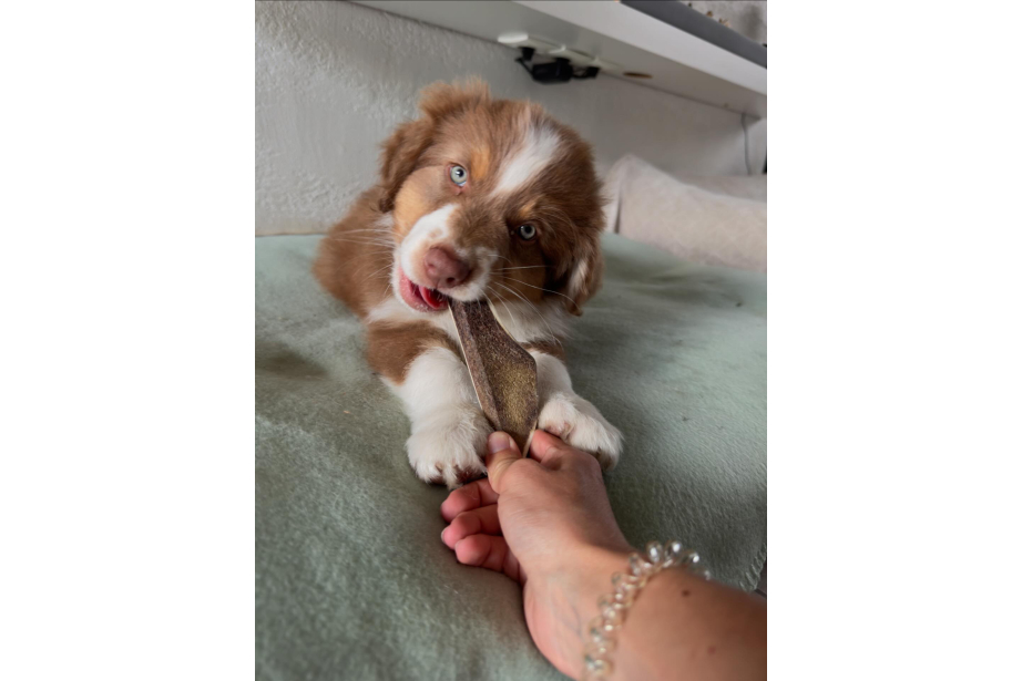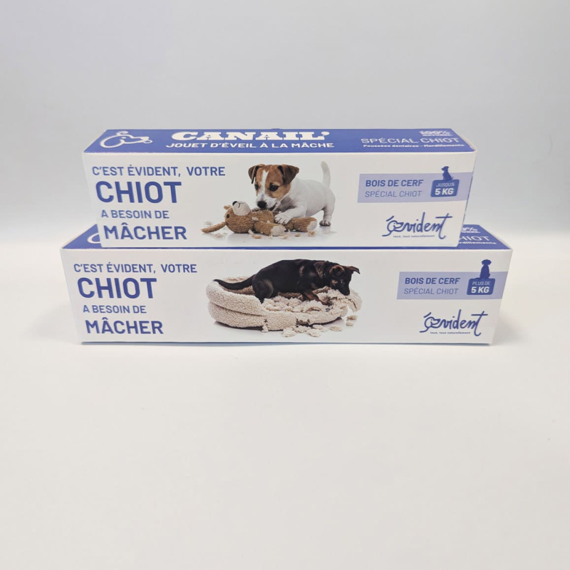 Les dents de lait poussent, votre chiot cherche à mordiller tout ce qui se trouve sur son passage ? Donnez-lui le bois de cerf spécial chiot pour qu'il puisse se faire les dents et soulager les douleurs dentaires.